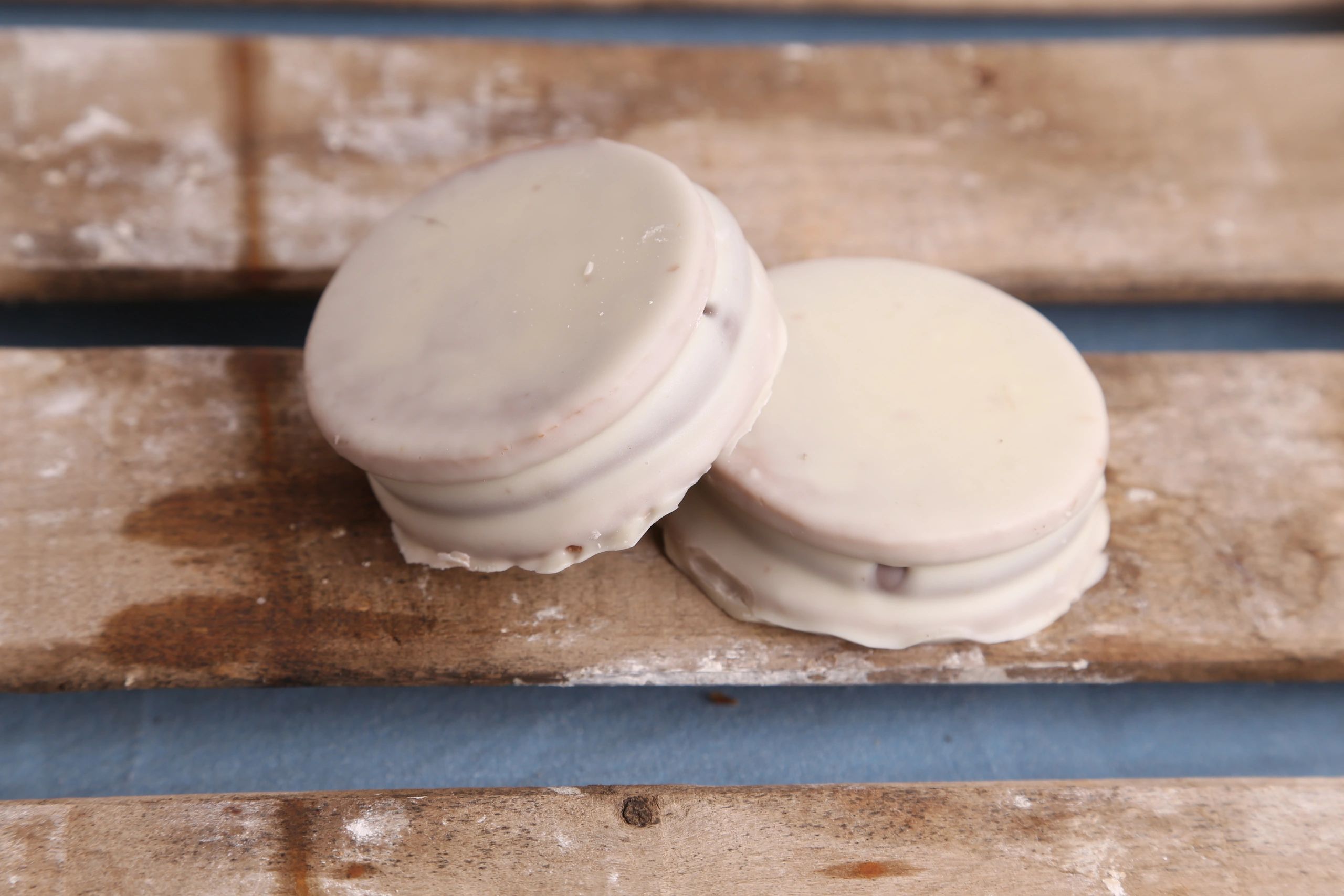 Exquisita galleta tipo sandwich sabor vainilla, relleno de cremoso dulce de leche y glaseado con chocolate blanco.